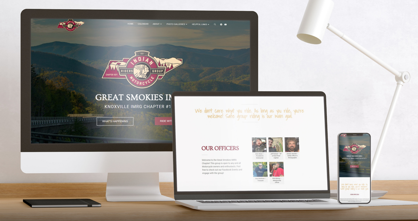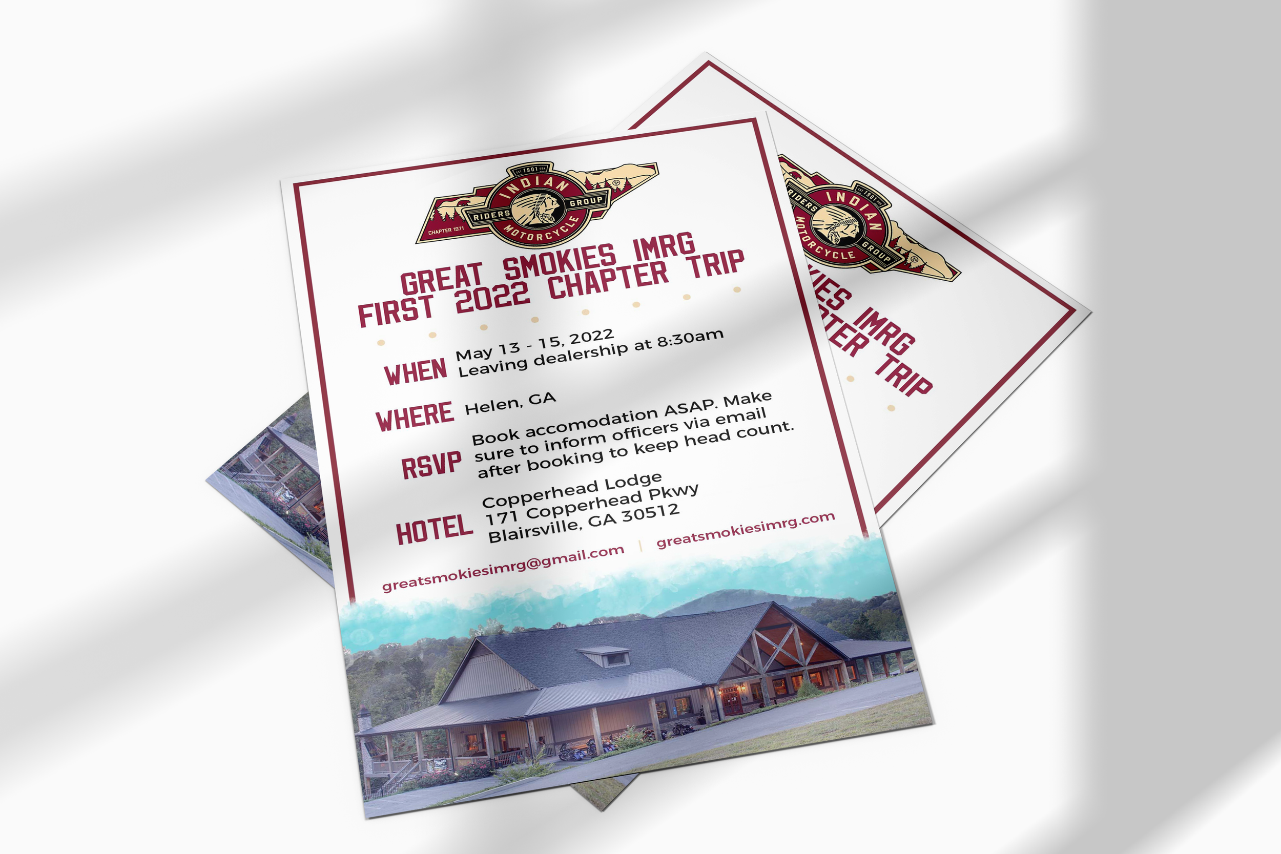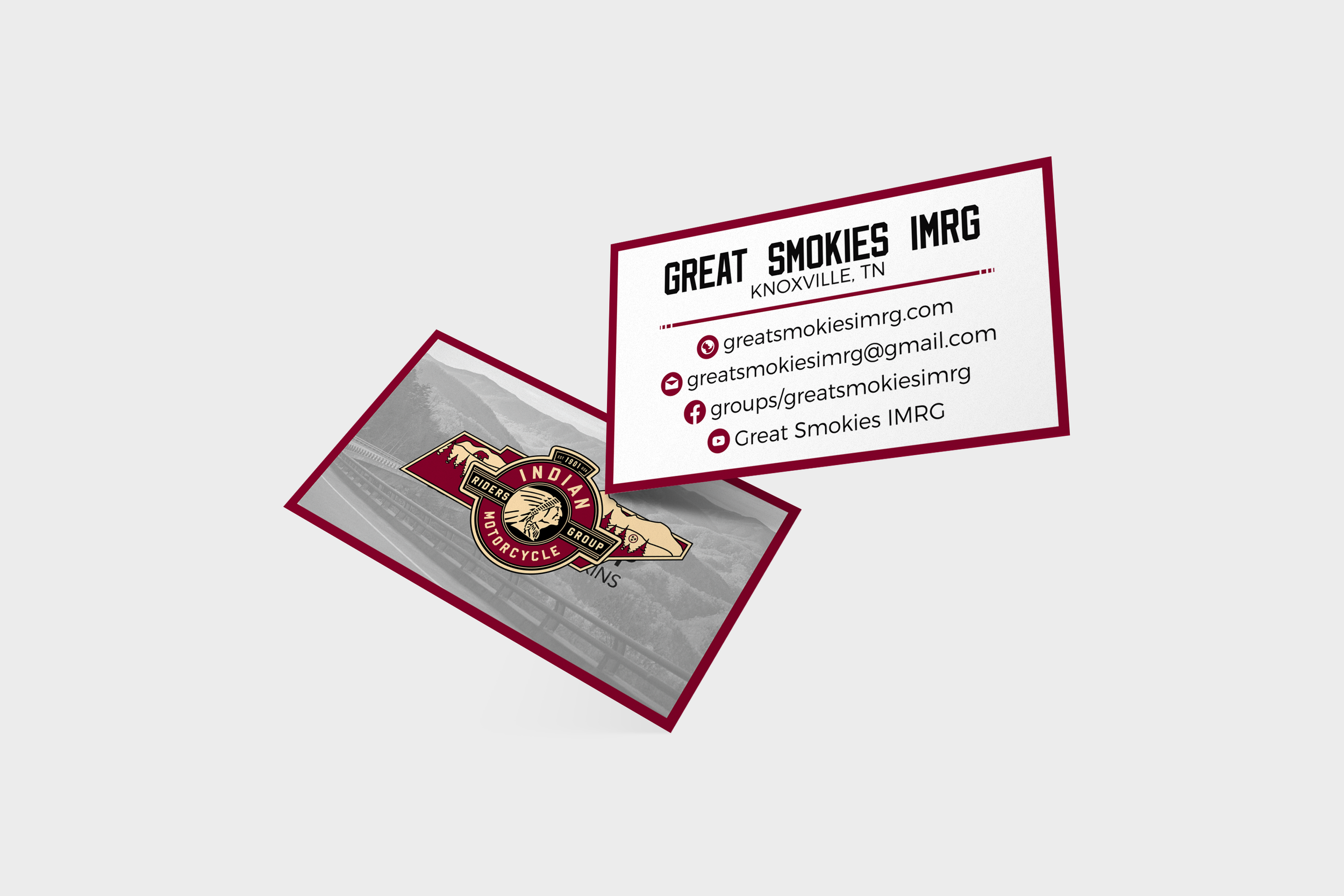 After becoming the new President of the Knoxville IMRG (Indian Motorcycles Rider's Group) I began a complete overhaul of the group's identity. I have since renamed the chapter to Great Smokies IMRG, created a new custom logo and patch, complete website overhaul and business cards. Also created a new YouTube channel for the chapter which I design and create all videos including the new video intro/outro. This project is ongoing with all future collateral such as event flyers, stickers and additional patches.